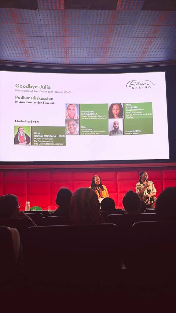 An Event at Film Casino in Vienna: Showing the Sudanese film: Goodbye Julia. Mendy organized the panel discussion after the film in cooperation with the Film Casino.